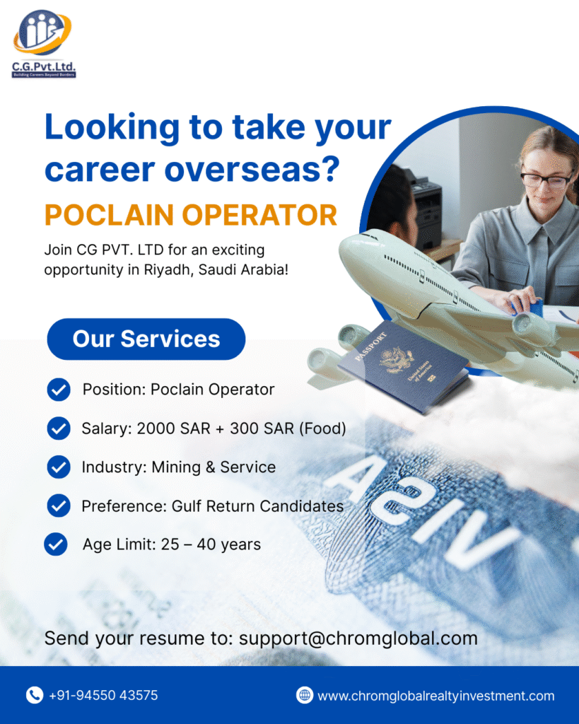 In today’s competitive job market, skilled professionals are increasingly looking beyond borders for better salaries, global exposure, and long-term career growth. Overseas employment, especially in the Middle East, has become a preferred choice for Indian workers in industries like mining, construction, infrastructure, and heavy machinery operations. At CG PVT. LTD, we take pride in connecting